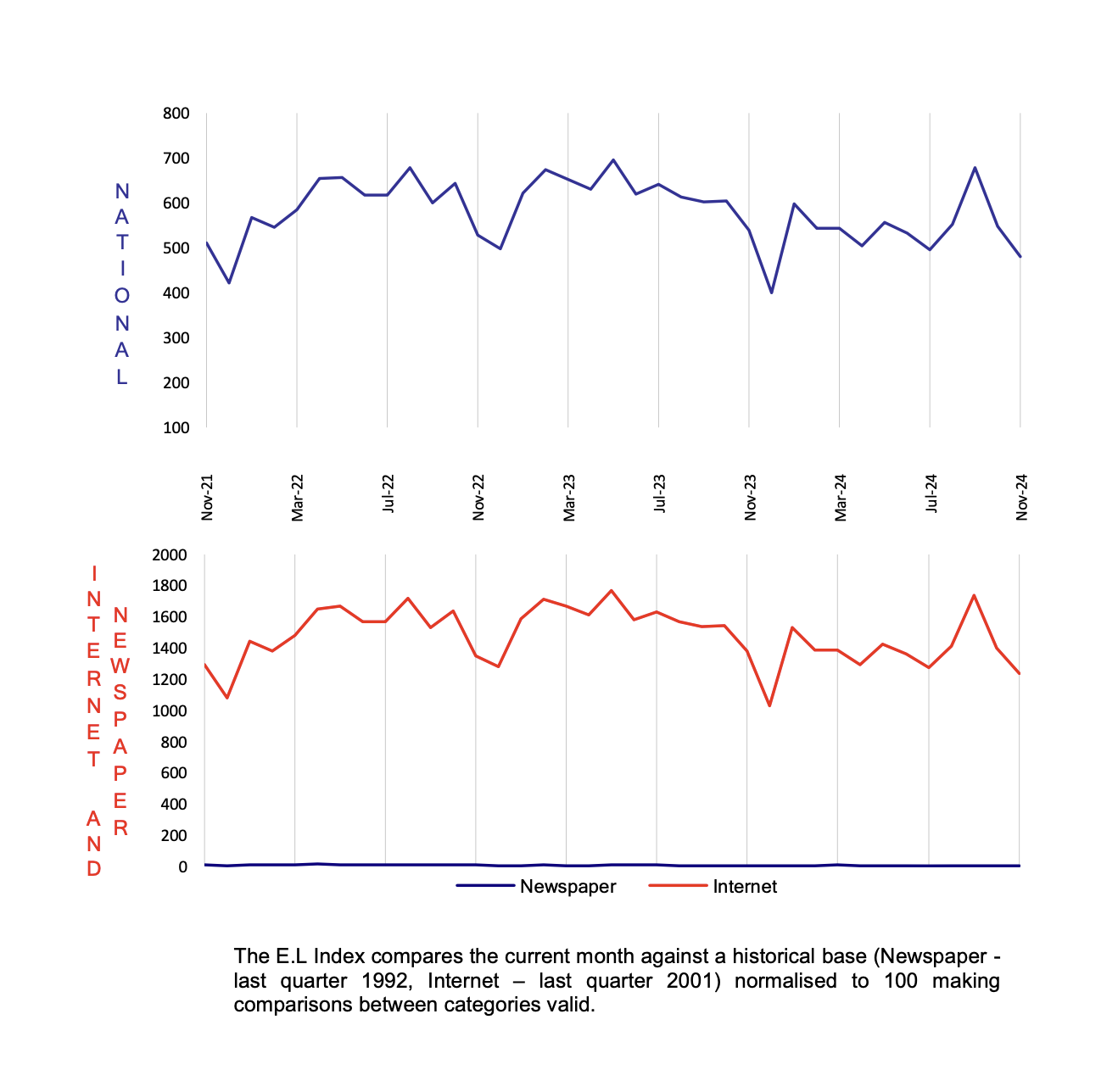 The E.L Index utilises data from both print and internet sources and is the only employment index to do so.