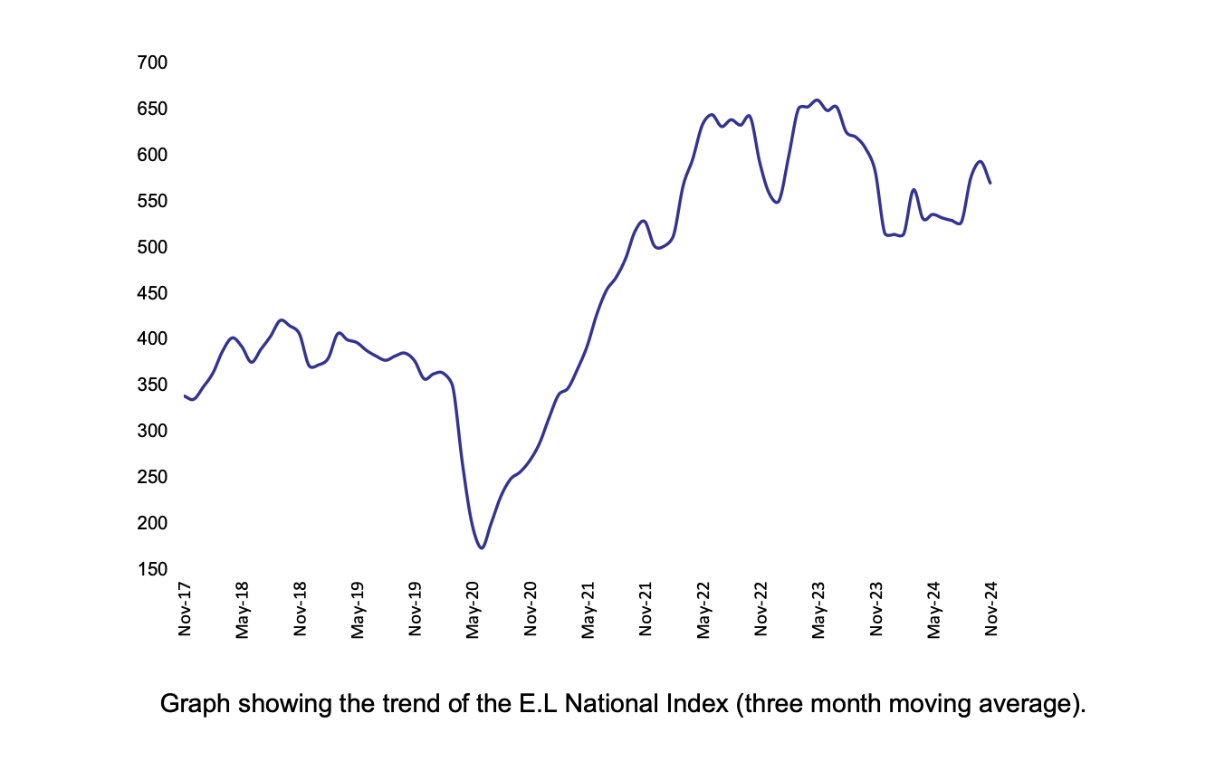 The E.L Index fell a further 12 per cent in November, losing all of the gains made in the middle of the year that were powered by government employment.