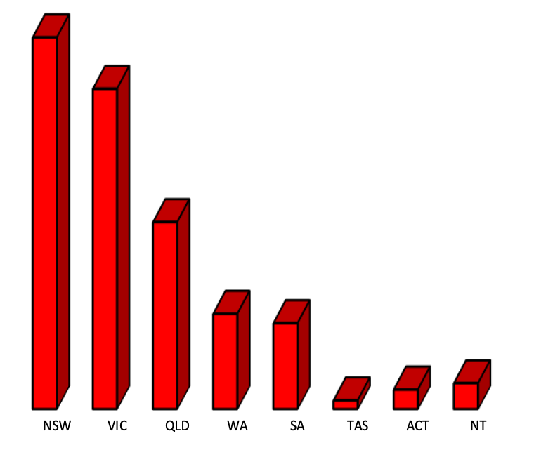 Amid the states and regions, New South Wales and Victoria fell 11 per cent and 17 per cent respectively.