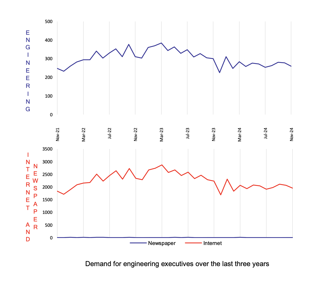 Engineering recorded a 6 per cent decrease compared with the prior month, making it the second smallest loser out of the sectors for November.