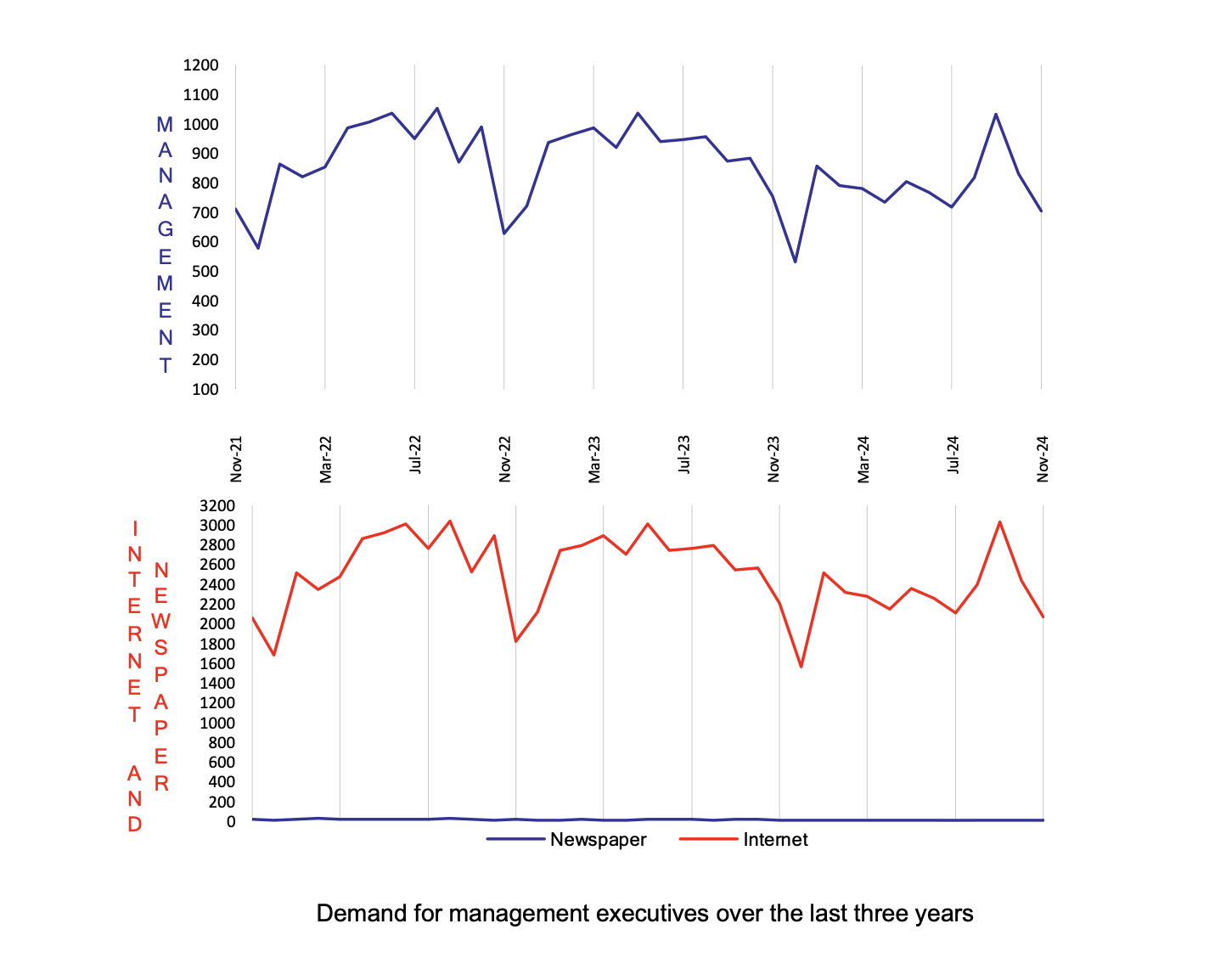 The Management sector saw a significant decrease in November, dropping 15 per cent after the 20 per cent drop in October.