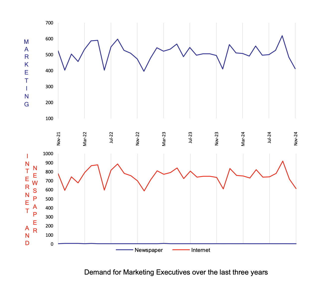 Marketing has dropped away sharply, losing 15 per cent to reach its lowest point since December 2023.