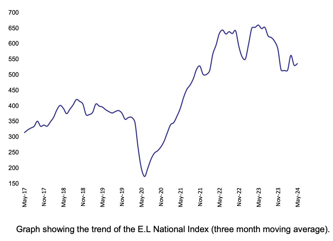 The E.L Index rose 10 per cent in May, responding to three consecutive months of prior losses.