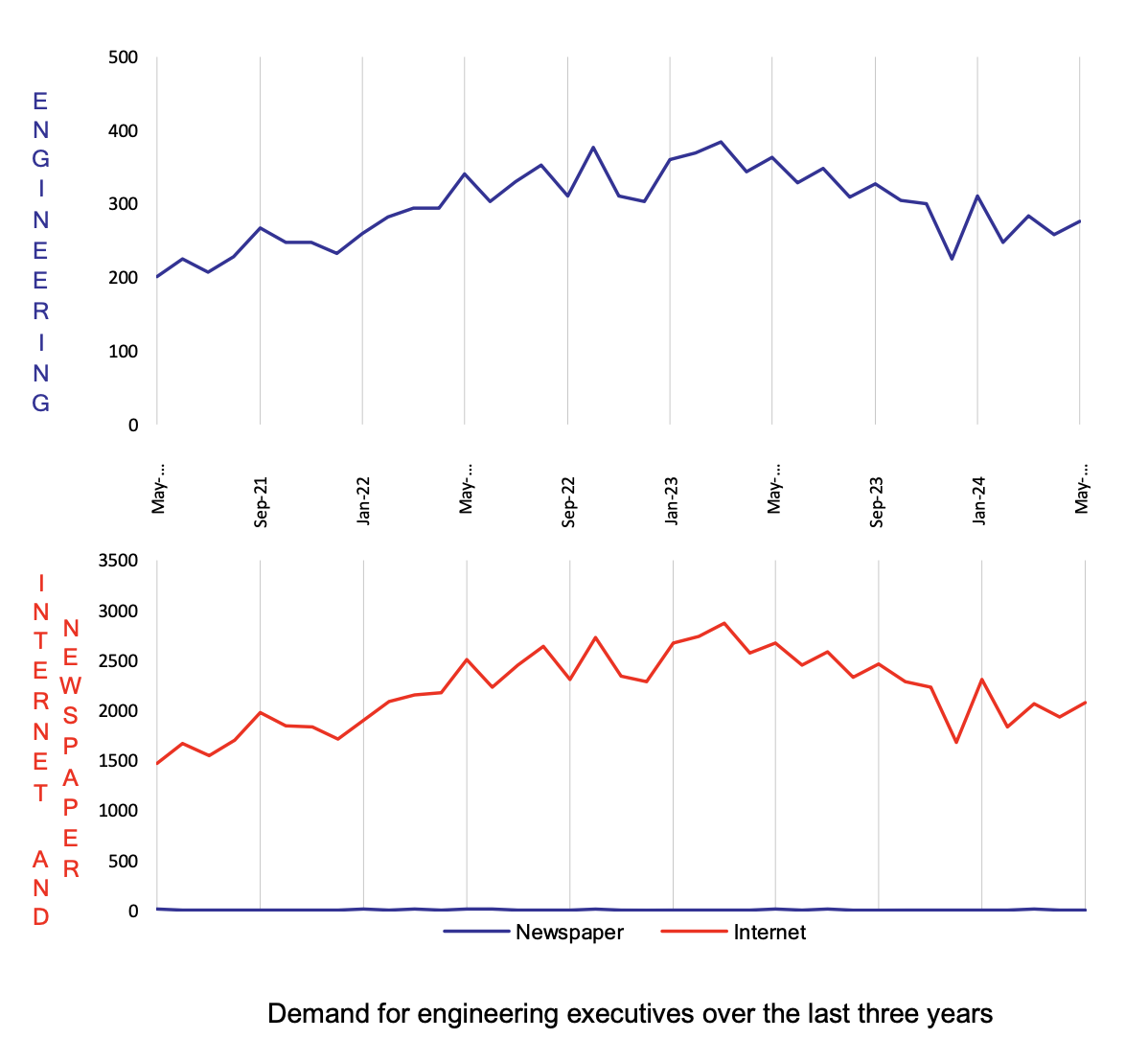 “In 2021 and 2022 there were shortages of positions during Covid that embellished job demand and wage levels and since then, the executive job market has been on a long-term, slow, decline.”