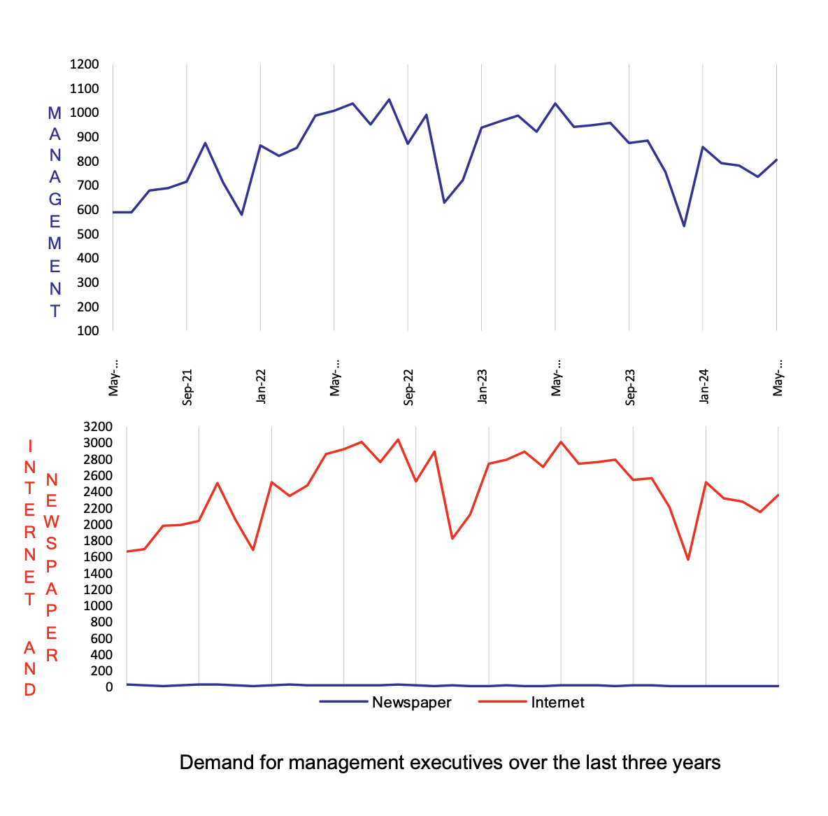 The executive job market took back some of its recent losses in May as government hiring and the end of the financial year prompted increased demand. The Index rose 10 per cent.
