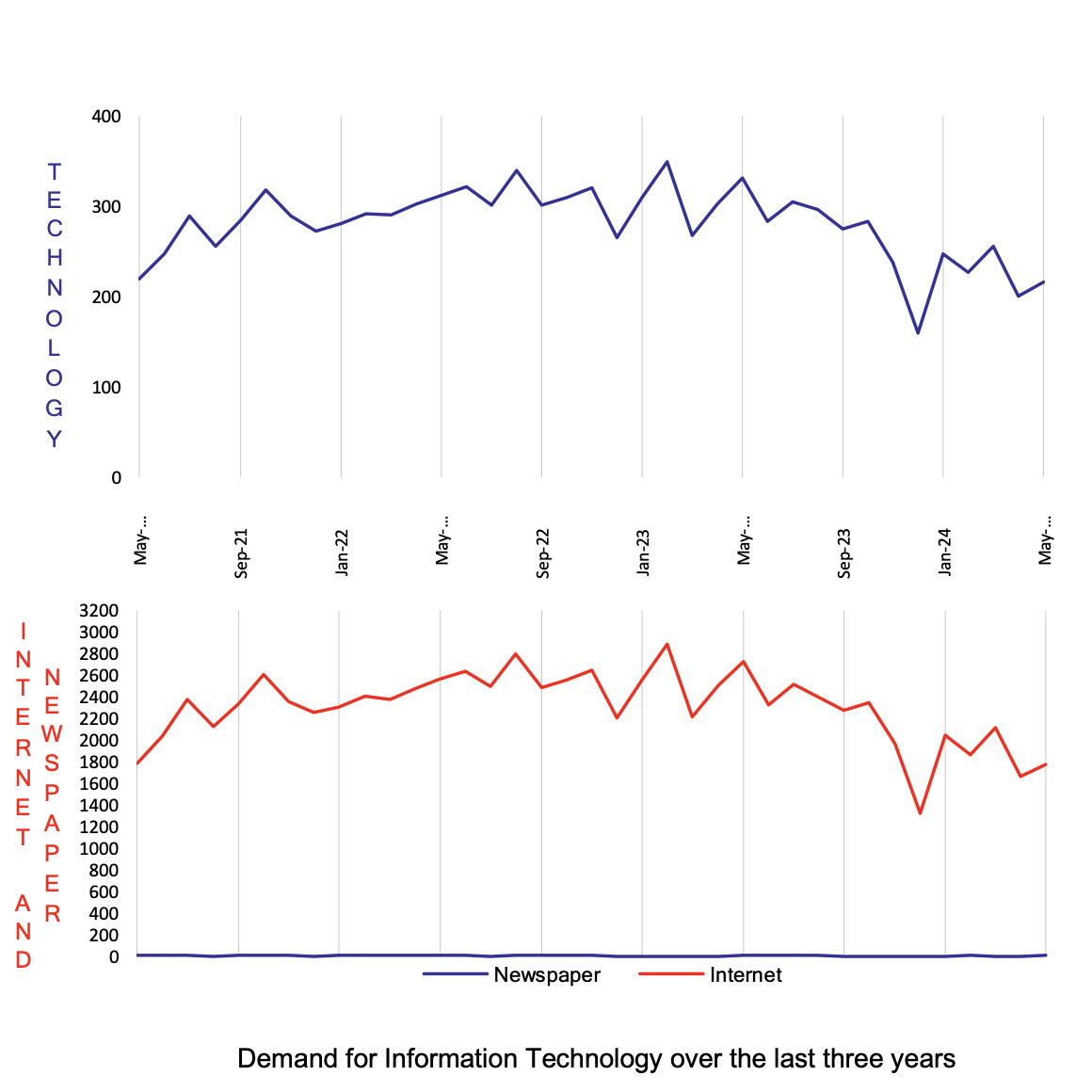 The print data is collected from the major employment paper in each state. National papers are not used to avoid “doubling up”. Internet data is not collected off the web sites which can be subject to some error but instead collected through raw data provided by the ISP themselves. Print data has over 15 years of historical data and the internet more than 6 years.