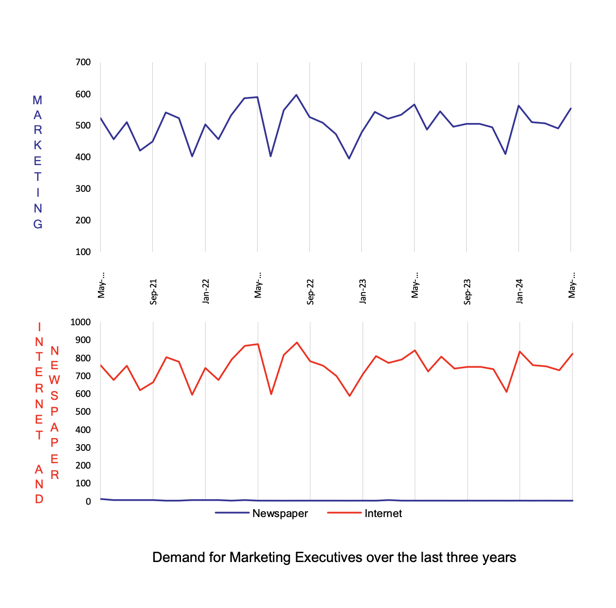 In the business sectors, the federal government’s increased hiring saw an increase in Marketing and Financial executives. Overall, Marketing and Financial were the most significant sectors, with the other sectors also gaining ground.