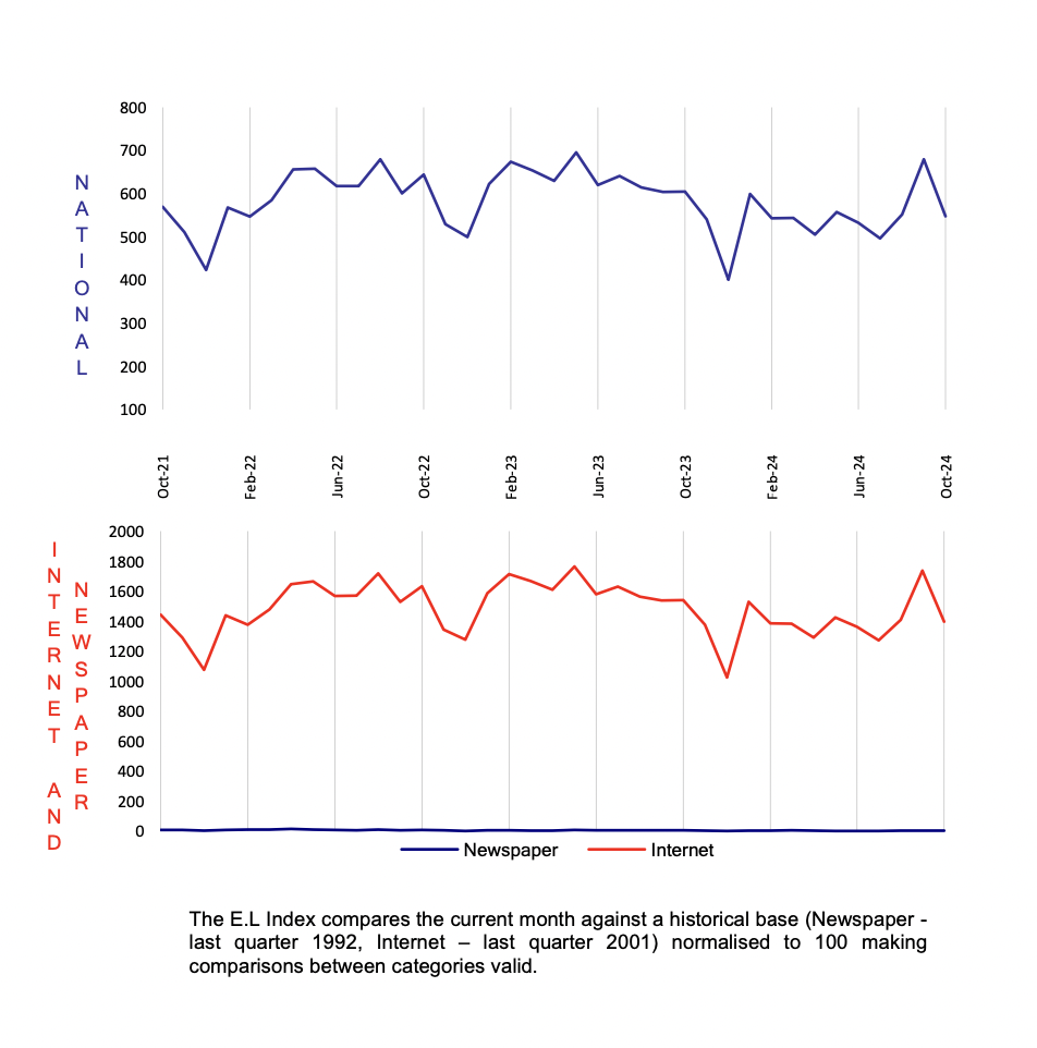 The E.L Index utilises data from both print and internet sources and is the only employment index to do so.
