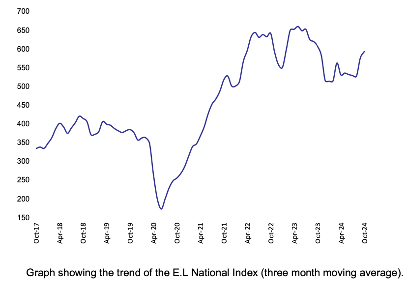 The EL Index fell 19 per cent in October, while still retaining some of the previous month’s increases and all of the increases in August.