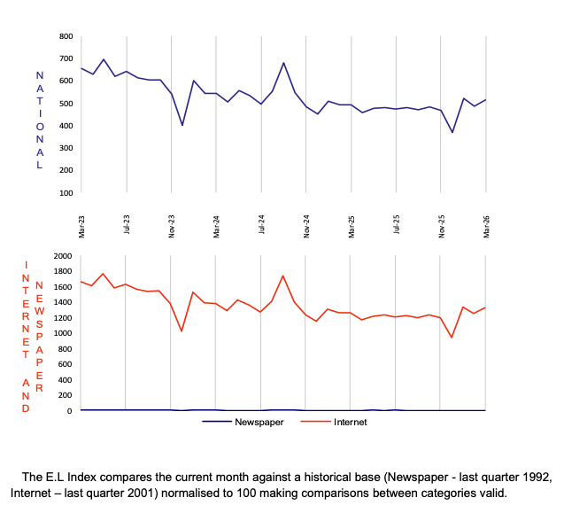 The E.L Index utilises data from both print and internet sources and is the only employment index to do so.