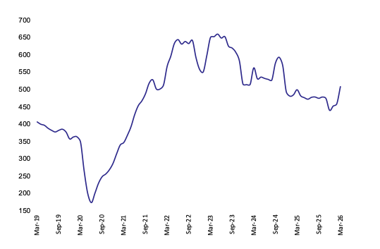 Finance’s trend has improved from the second half of 2025, aided by a 4 per cent increase in March compared with the prior month.
