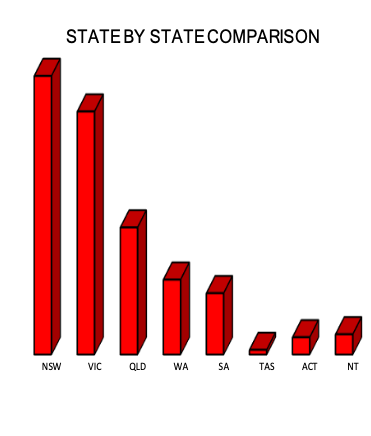 The largest states of NSWs and Victoria produced gains while Queensland was slightly lower. The ACT the best performer of all the regions, rising 21 per cent. While government sector employment provided most of the surge in the federal capital, business also grew within the public supported state.